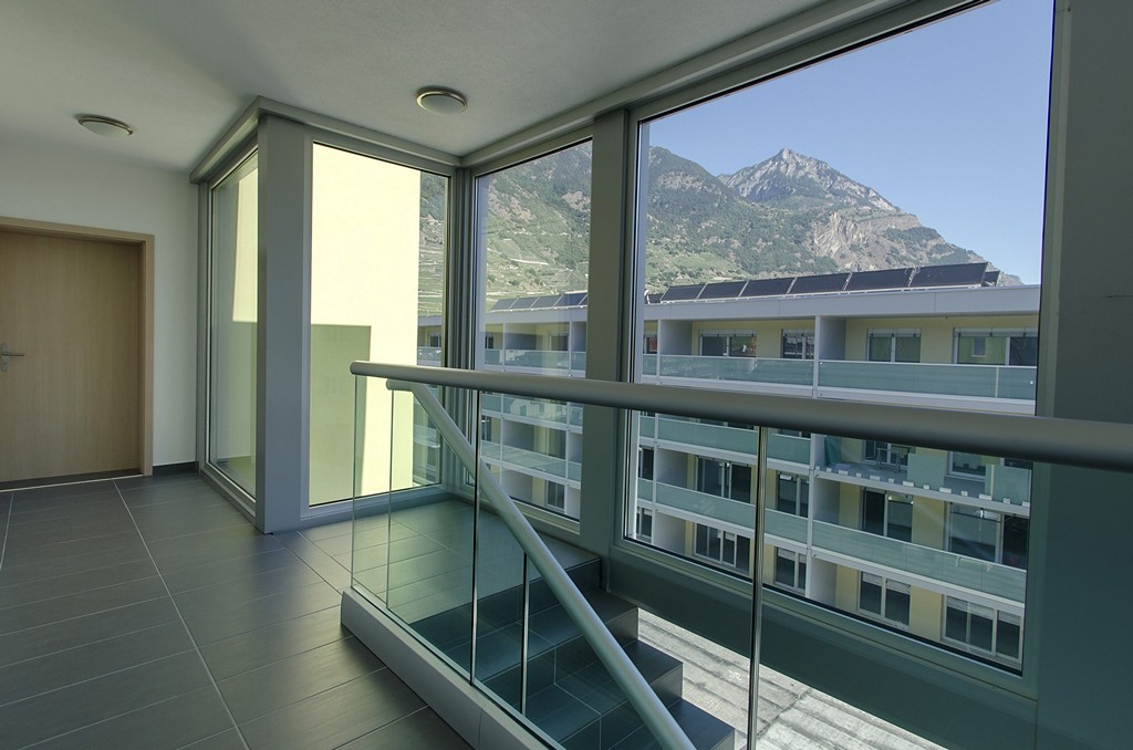 Stambeni kompleks u gradu Fully nadomak Siona u Š vicarskoj, naselje od više stambenih zgrada sa prozorima, vratima, djelovima fasade i staklenim ogradama PVC Stolarija Horozović d.o.o.