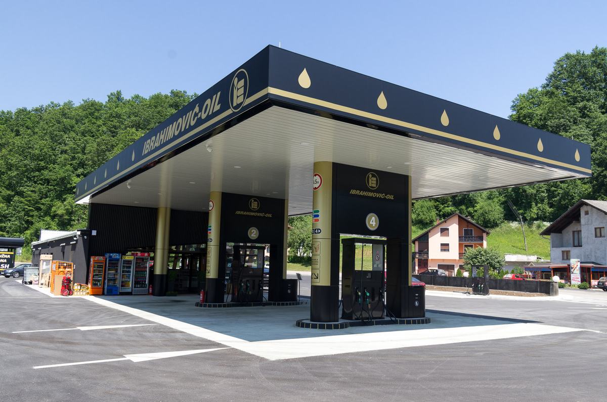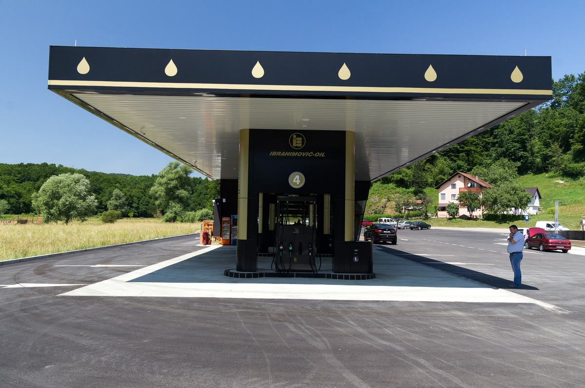 Benzinska pumpa Ibrahimović, odličan primjer uklapanja ALU elemenata i velikih staklenih površina sa unutrašnjošću od drvenih elemenata.
